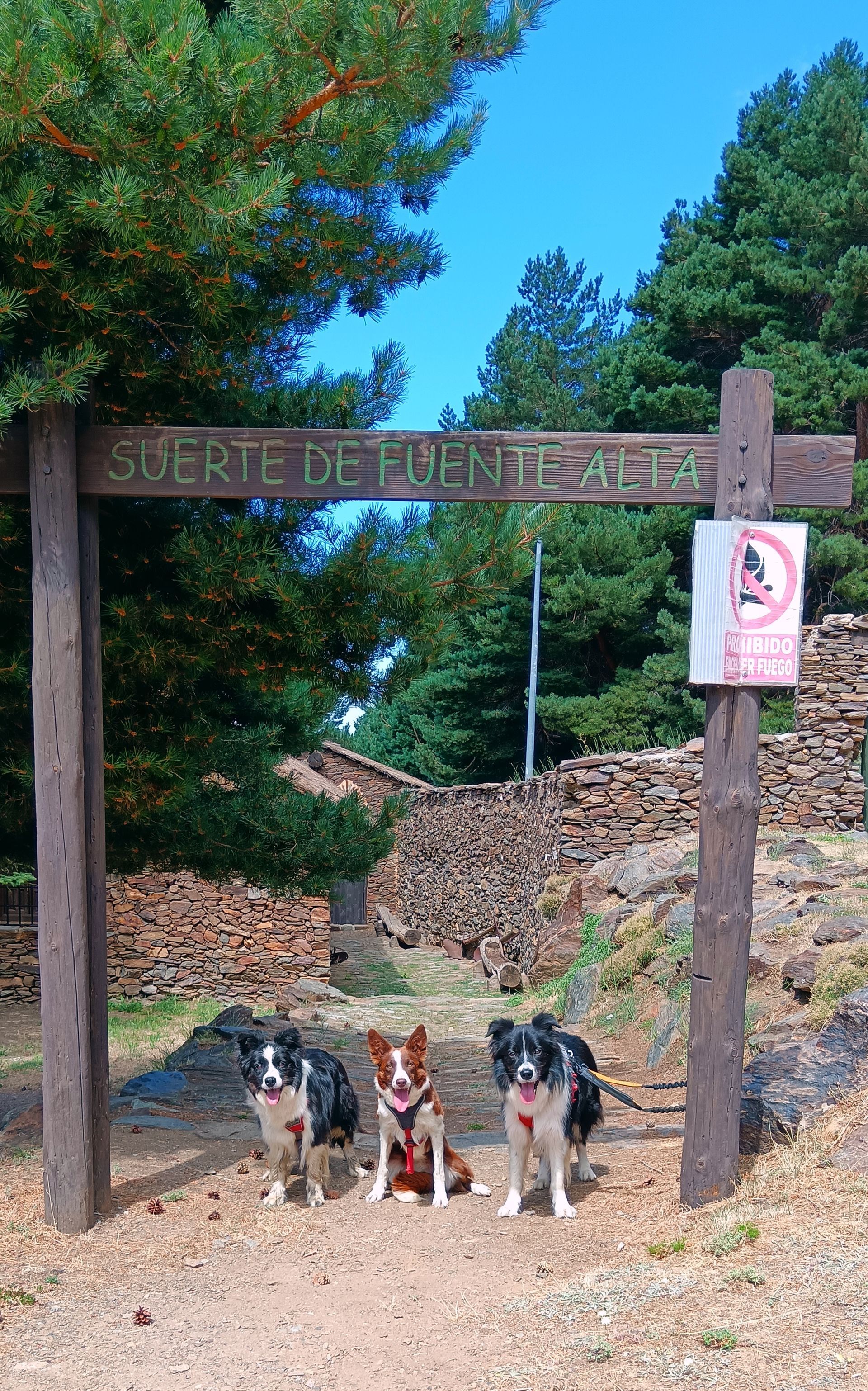 Durante toda la ruta nos hemos mantenido por debajo de los 20 °C, gracias a la altitud, unos 2.000 metros sobre el nivel del mar, y a la sombra de los árboles. Un entorno tranquilo, natural y con vistas espectaculares, ideal para disfrutar del aire puro de la montaña junto a nuestros Border Collies.