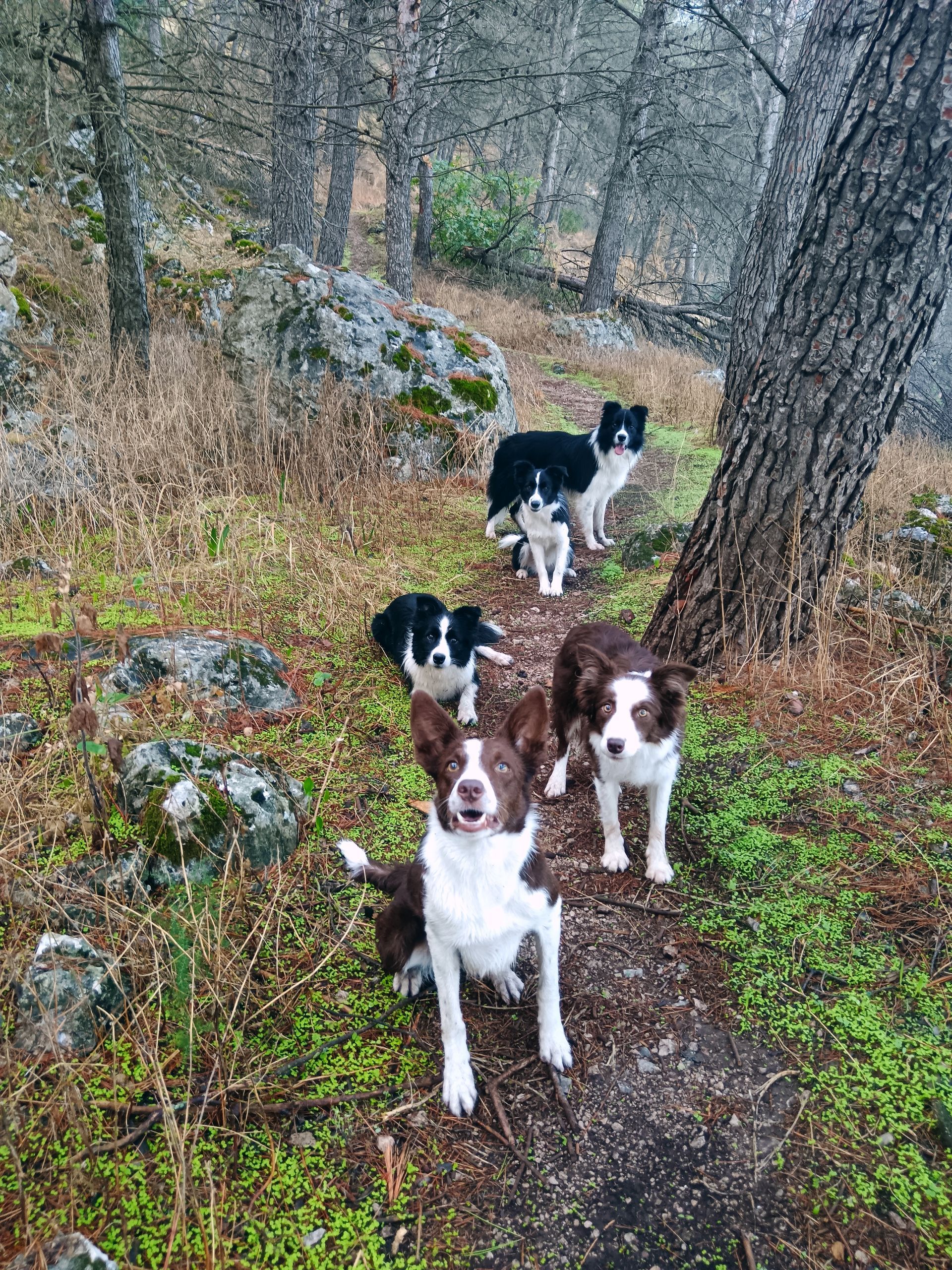 Hoy han disfrutado muchísimo del paseo, con el terreno mojado y ese olor tan especial que deja la lluvia en la montaña. Verlos aún con ganas, felices y disfrutando del entorno es un regalo inmenso.
